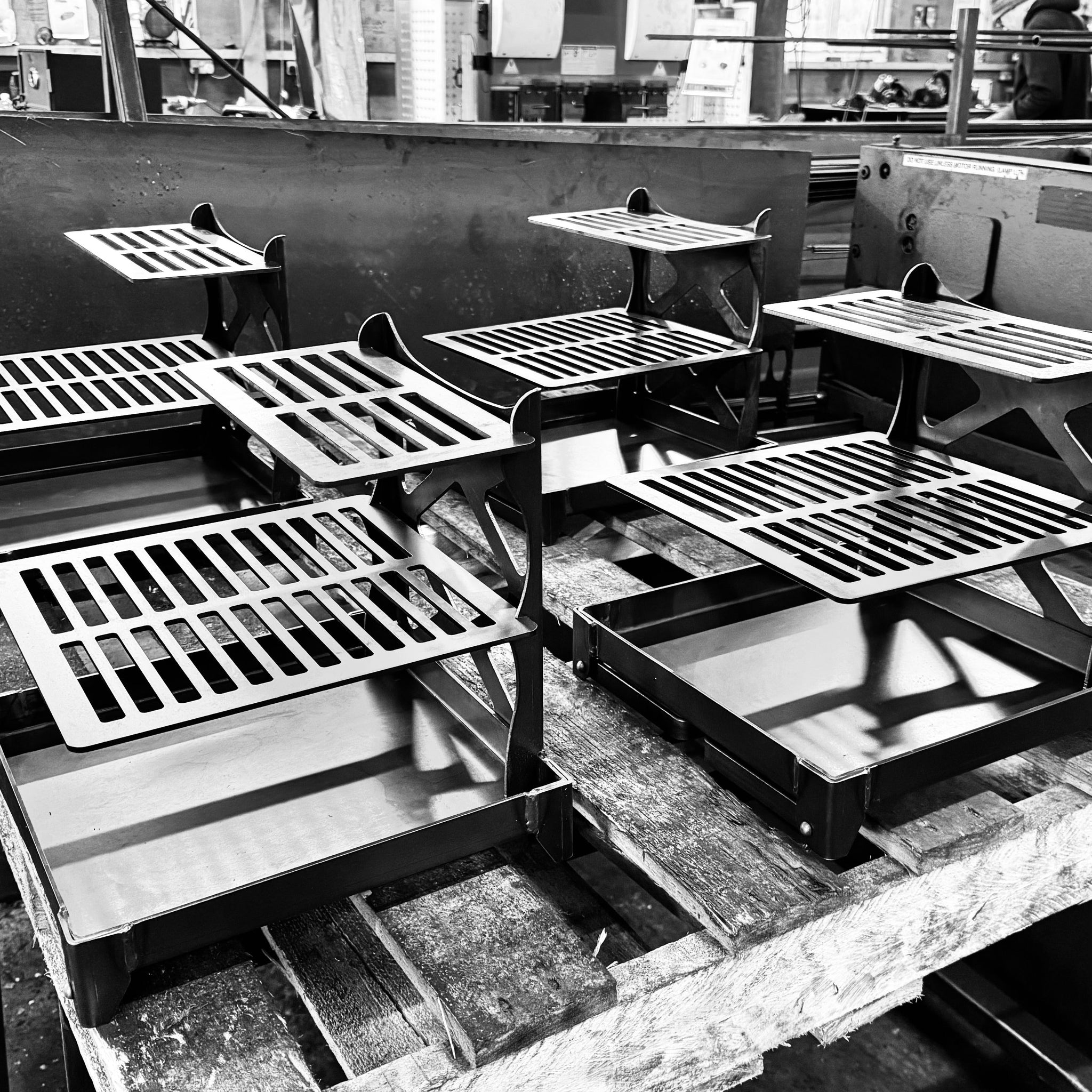 Supplied with the pit with folding legs, grill rack with two height options, one full grill plate and one half grill plus a storage strap. The plates are the same ones used on our base camp grill, additional ones can be purchased along with with a solid griddle plate.
